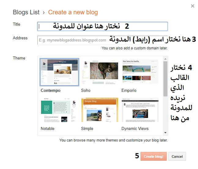 - الخطوة 3: إنشاء مدونة واختيار الاسم